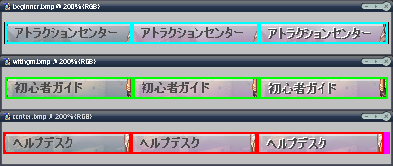 ボタン画像に2pixの境界線をわざと描いてみたボタンを用意しました。